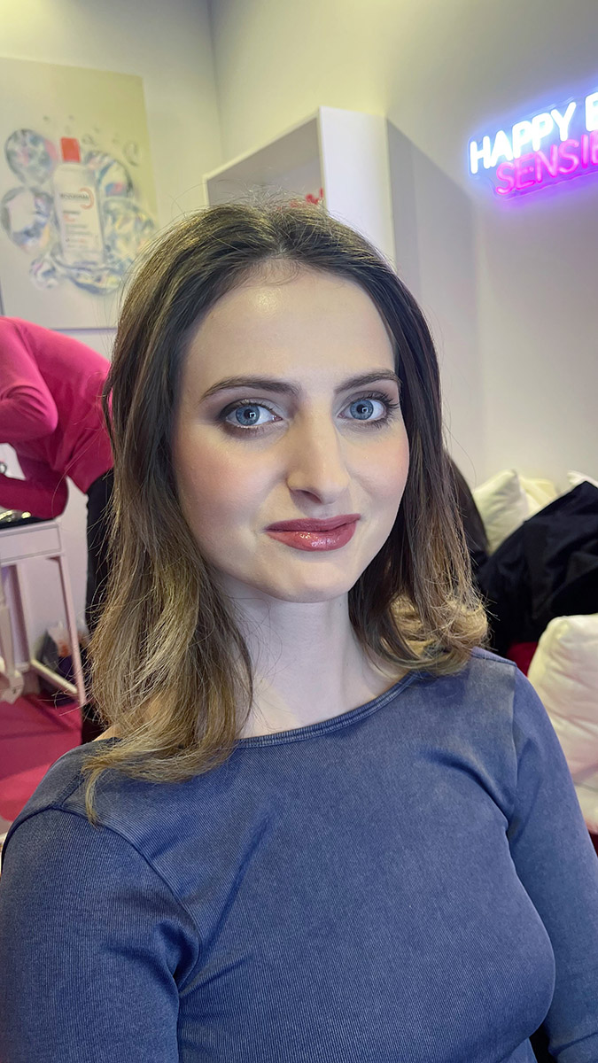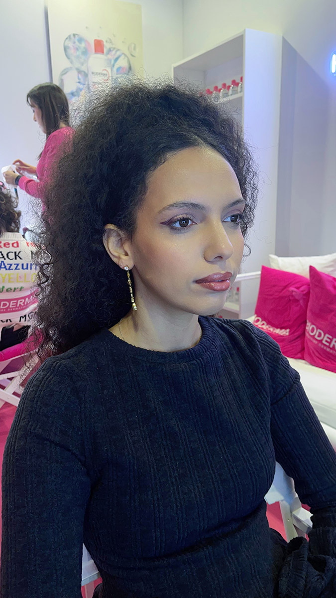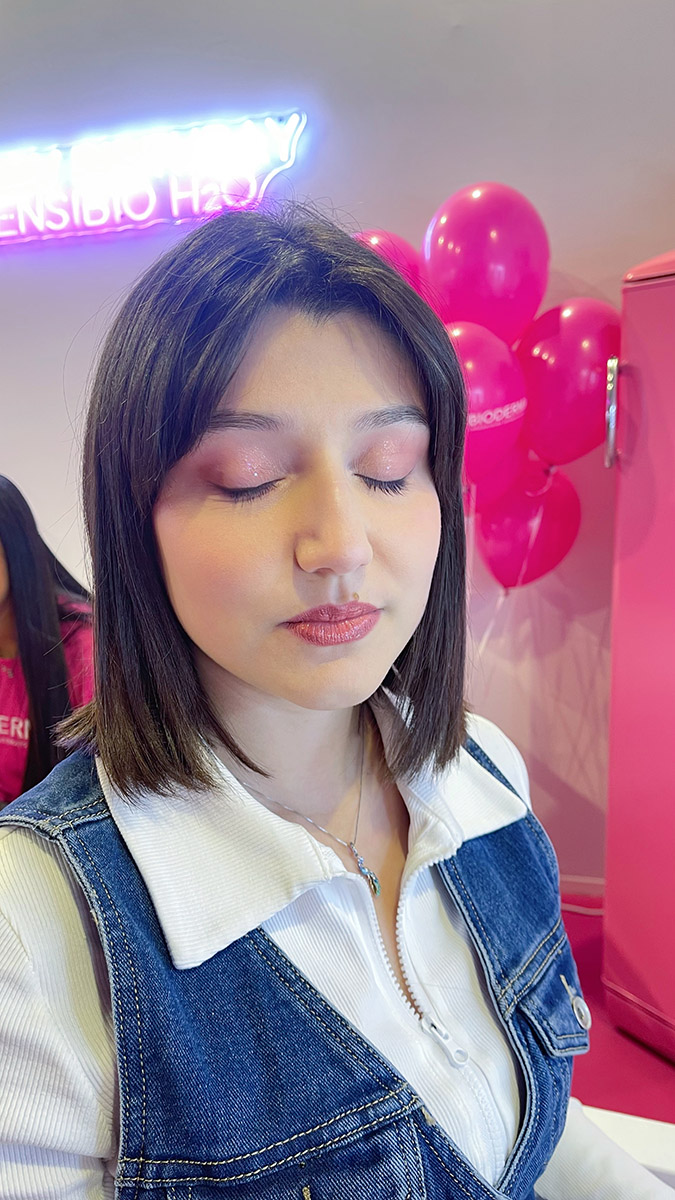 Per celebrare i 30 anni dell’iconica acqua micellare Sensibio H2O, BIODERMA ha creato un’area dedicata alla skincare e alla preparazione della pelle, ospitando skin specialist e make-up artist. Il mio ruolo è stato quello di realizzare look sofisticati e radiosi, ispirati al leggendario “tappo rosa” di Sensibio H2O, esaltando la bellezza naturale attraverso un make-up che rispettasse ogni tipo di pelle, anche la più sensibile.